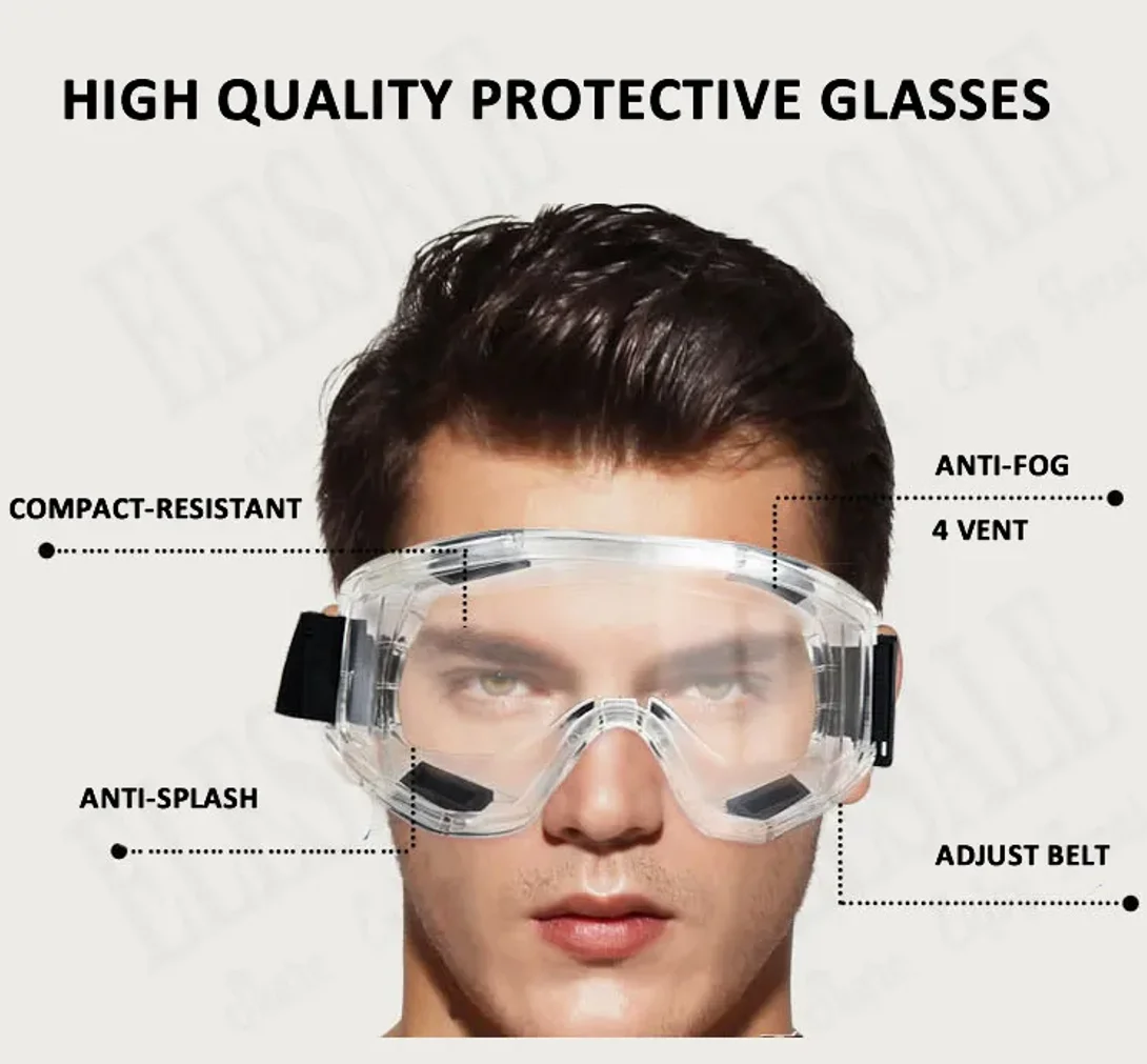 Gafas de seguridad resistentes a salpicaduras químicas y a impactos gafas protectoras transparentes antivaho/antipolvo/revestimiento antiarañazos