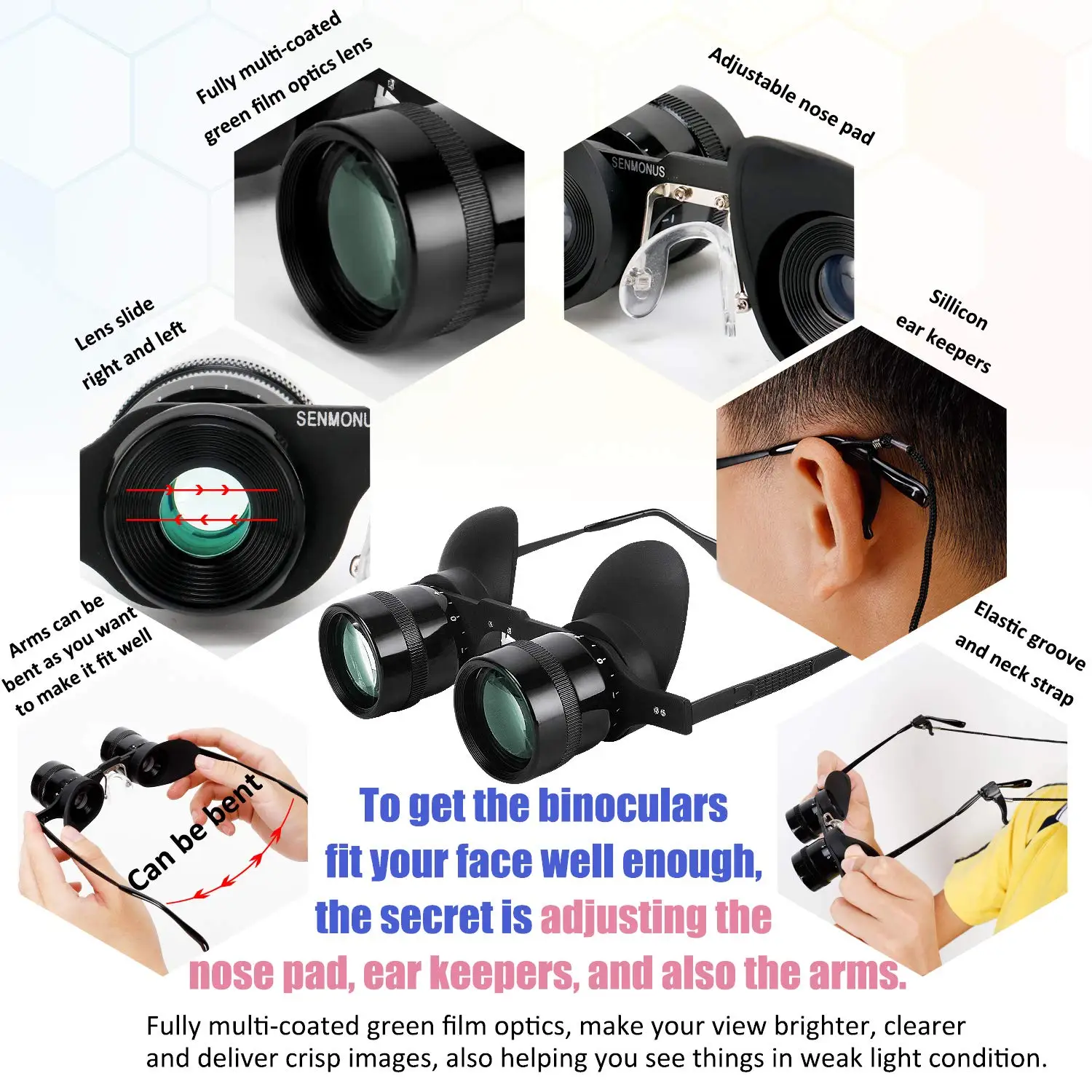 Gafas binoculares profesionales manos libres para pesca, teatro, vista, observación de aves, conciertos deportivos, ópera, TV para adultos y niños