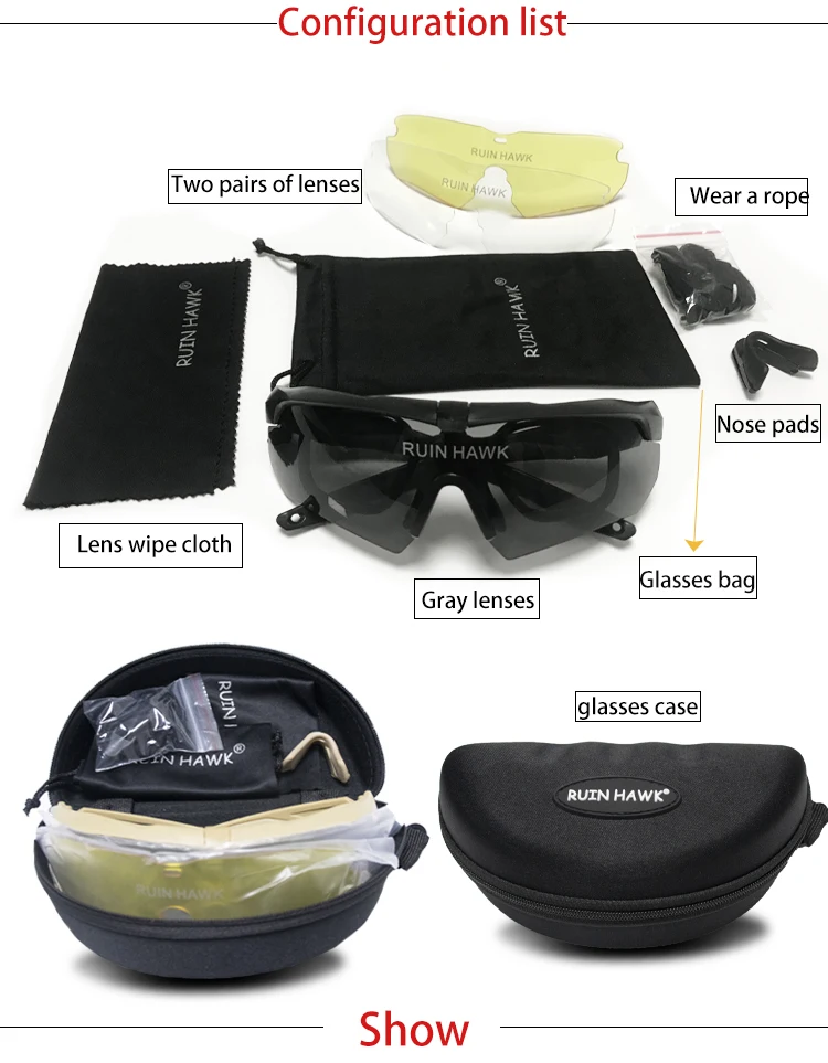 El paquete contiene: caja para gafas, 3 lentes, marco, paño para limpiar, bolsa para gafas, almohadilla para la nariz, cuerda, marco para miopía.