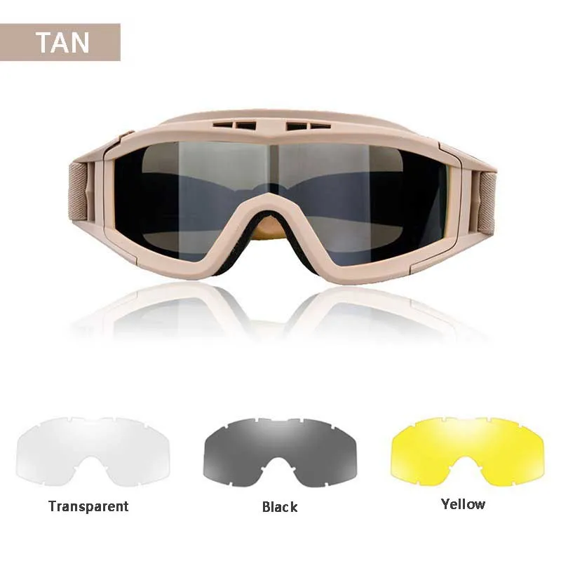 Gafas deportivas de Montañismo para motocicleta al aire libre, gafas tácticas CS, 3 lentes, a prueba de viento y polvo, para tiro todoterreno