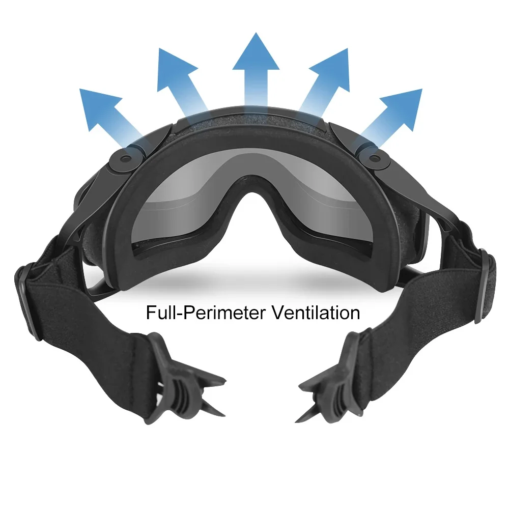 Sistema de ventilación y revestimiento antivaho: revestimiento antivaho en el interior y el exterior de la lente, la combinación de ventilación de todo el perímetro y filtración de esponja minimiza el empañamiento de la lente y filtra las partículas, el polvo y las salpicaduras en el aire.