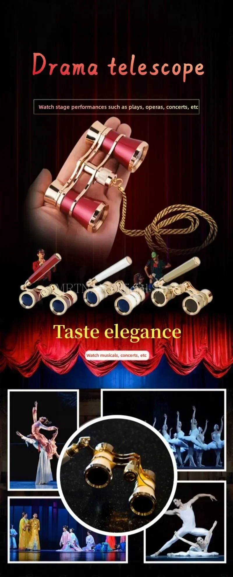 Gafas 3x25, Mini binoculares, telescopio, gafas de teatro de ópera con mango ajustable, telescopio para ver teatro