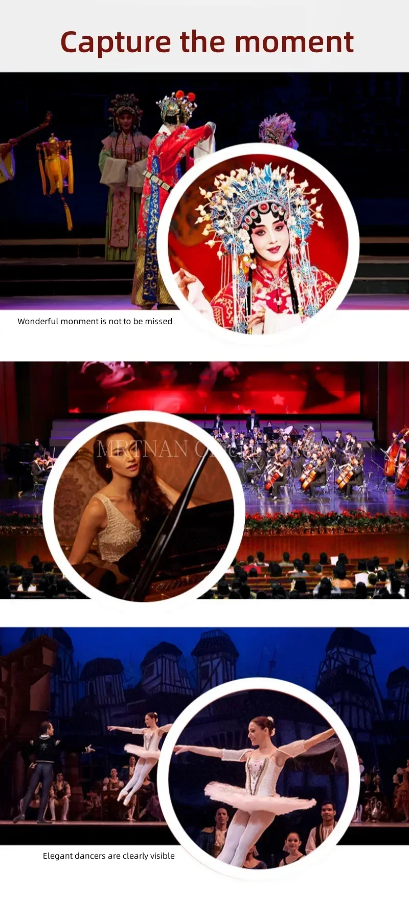 2.USOS MÚLTIPLES: Los binoculares de teatro tienen una amplia gama de aplicaciones en viajes, caminatas, campamentos, observación de aves y otras actividades.Mientras tanto, también es adecuado para ver obras de teatro a gran escala, conciertos y partidos de fútbol, lo que permite a los usuarios apreciar mejor el paisaje y las actuaciones.