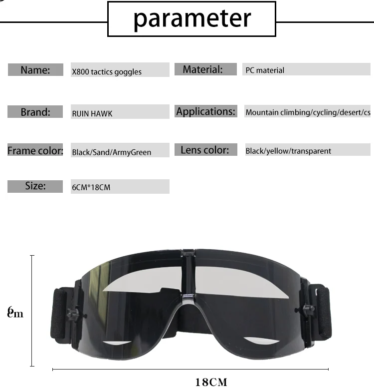 Gafas militares del Ejército X800, gafas tácticas, gafas tácticas militares: gafas de tiro balístico, casco y gafas de sol para uso militar