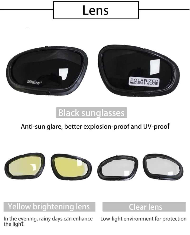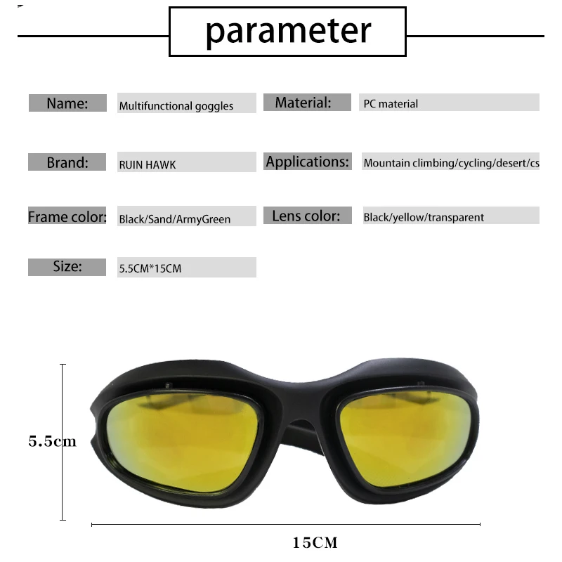 Gafas tácticas militares del desierto 4 lentes Army C5 UV para exteriores