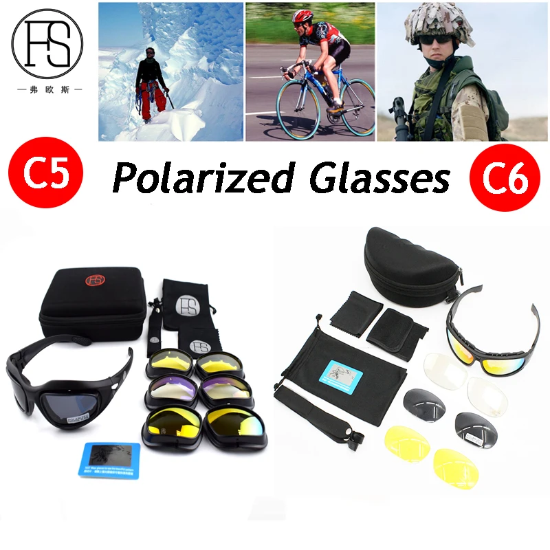 Gafas tácticas militares del desierto 4 lentes Army C5 UV para exteriores