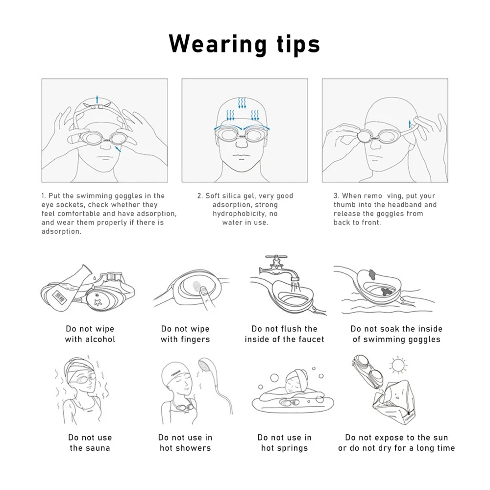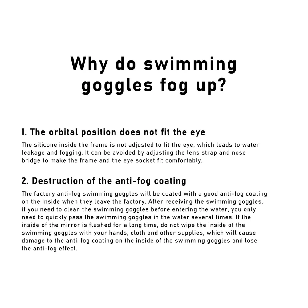 Antivaho y anti-uv: la lente de las gafas de natación adopta la última tecnología de protección ambiental para el tratamiento antivaho, la superficie exterior de la lente ha sido cuidadosamente recubierta, y la lente de las gafas filtra los rayos dañinos y los protege. Tus ojos están protegidos del sol.