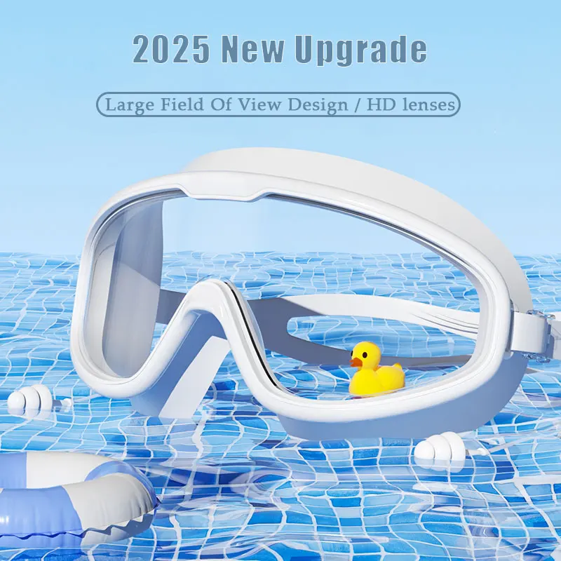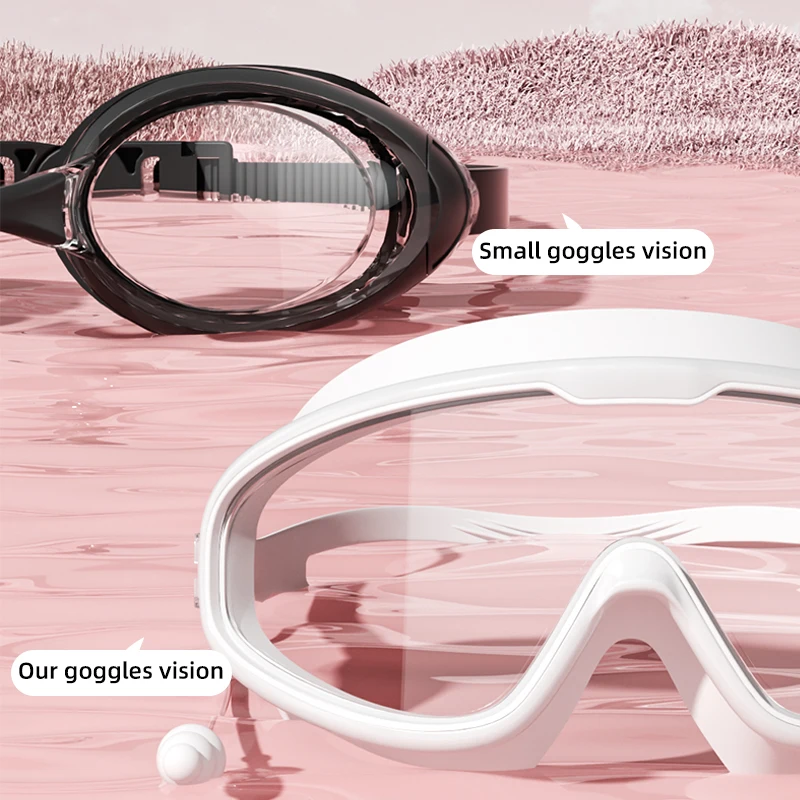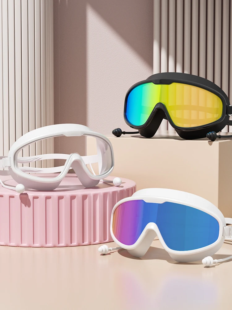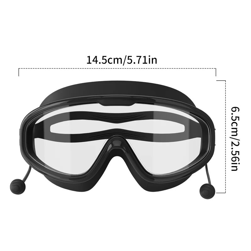 Gafas de natación profesionales para adultos con tapones para los oídos: montura grande HD, visión amplia, antivaho y protección UV, gafas de natación para hombres y mujeres