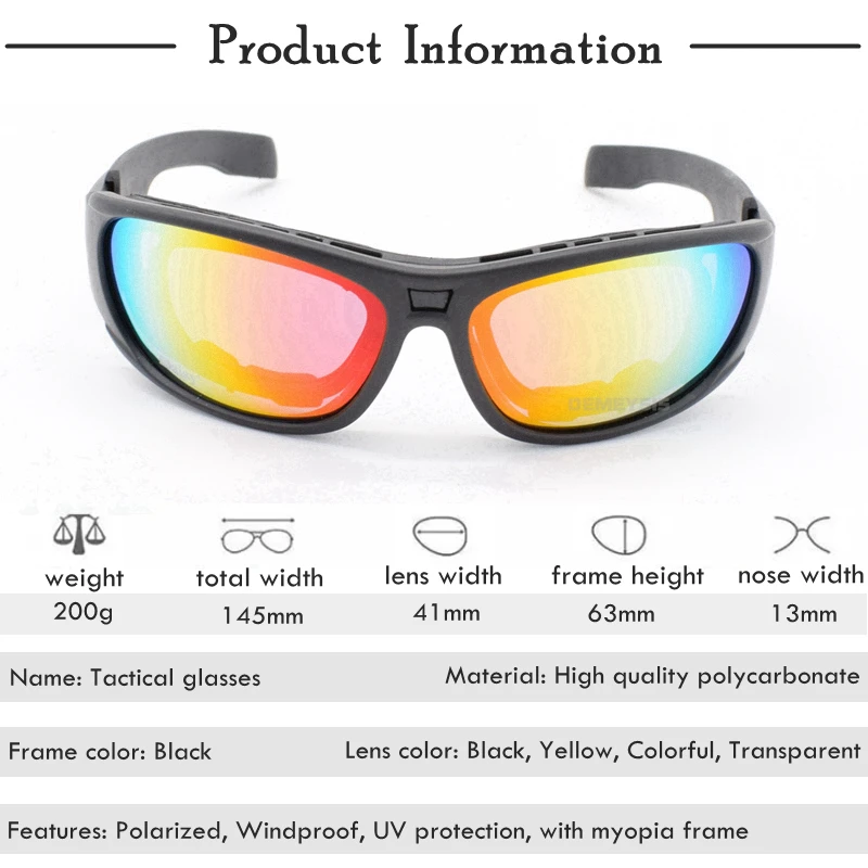 Gafas polarizadas CS Paintball Gafas de protección de combate táctico Motocicleta Caza Tiro Airsoft Gafas con 4 lentes Kit