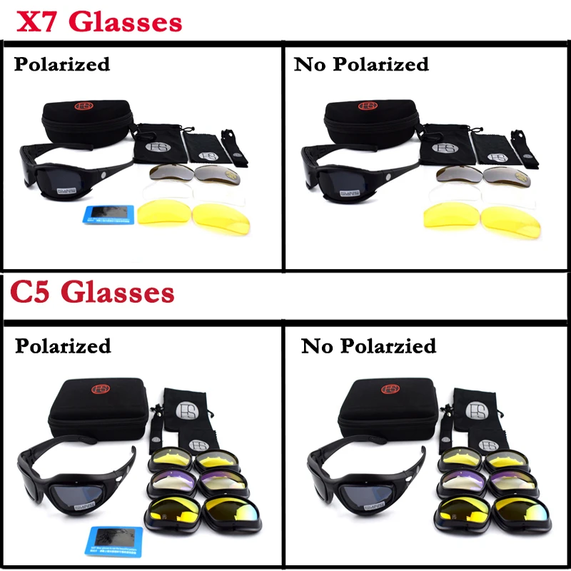 Gafas polarizadas tácticas para hombre C5 X7, gafas de sol para exteriores, ciclismo, caza, tiro, senderismo, motocicleta, gafas, 4 lentes