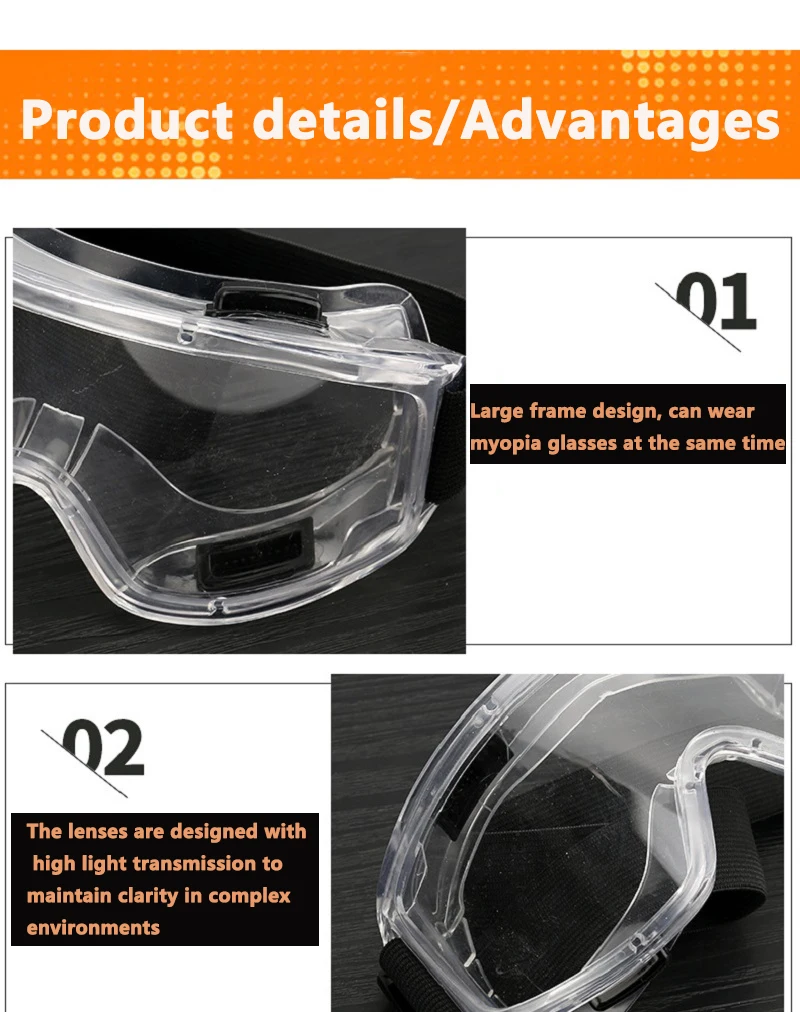 * Gafas de seguridad extra anchas y ultra suaves con lentes de plástico duro y revestimiento duradero a prueba de arañazos, impermeables y que se ajustan sobre las gafas.