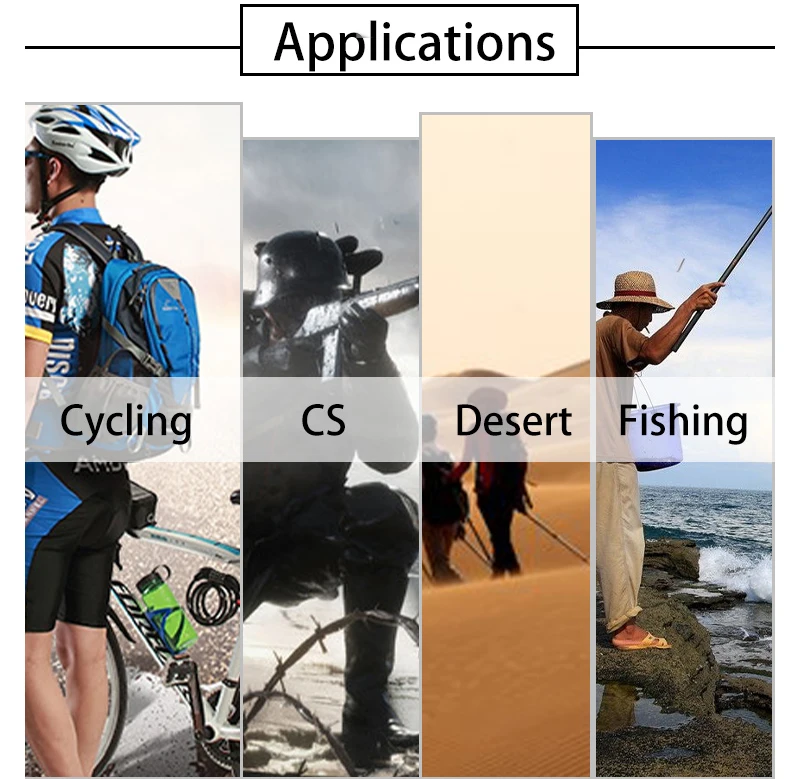 Aplicable: deportes de tiro militar táctico, ciclismo, pesca, carrera, esquí, escalada, etc.