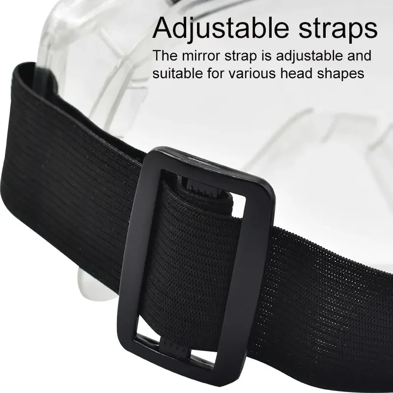 5. Cinturón de cabeza ajustable, adecuado para diferentes tamaños de cabeza y puede ajustar la tensión. 6. Adopta PVC blando en el marco, cómodo de llevar y proporciona una protección completa para sus ojos.