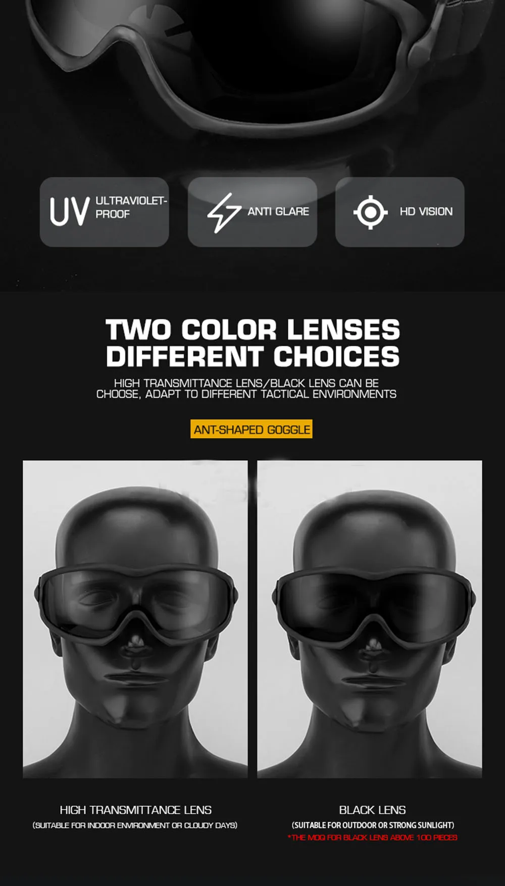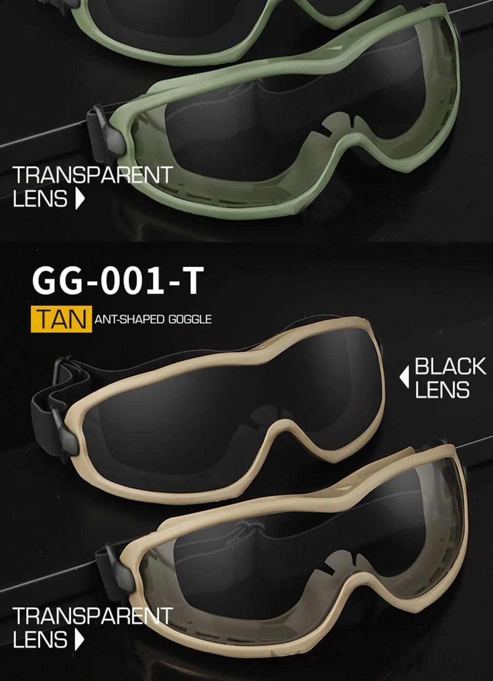 Gafas de seguridad tácticas en forma de hormiga, gafas protectoras CS Paintball, ciclismo, tiro, caza, senderismo, gafas de sol