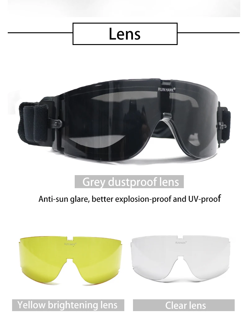 3 lentes de policarbonato de 2,2mm de grosor y alto impacto (gris, transparente, amarillo)
