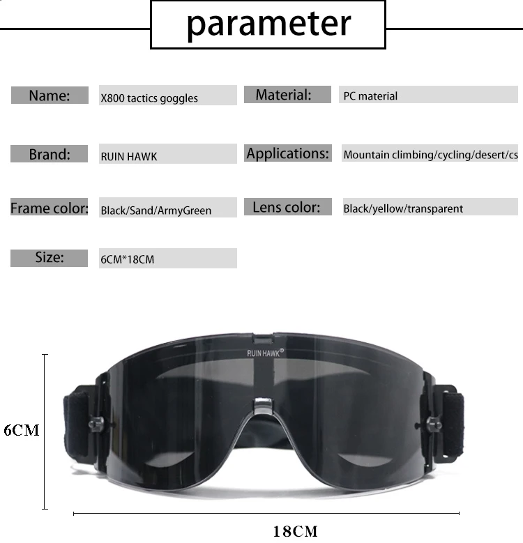 Gafas de sol deportivas anti-ultravioleta para exteriores X800, gafas tácticas militares, gafas de caza, protección de cartucho de pistola de aire, 3 lentes