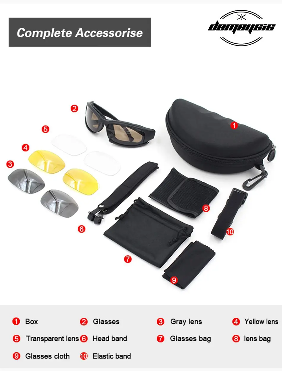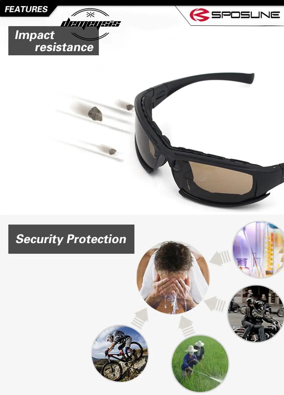 Gafas tácticas polarizadas, gafas de sol UV, gafas de 4 lentes, gafas de Airsoft, gafas de tiro, gafas de senderismo para motocicleta