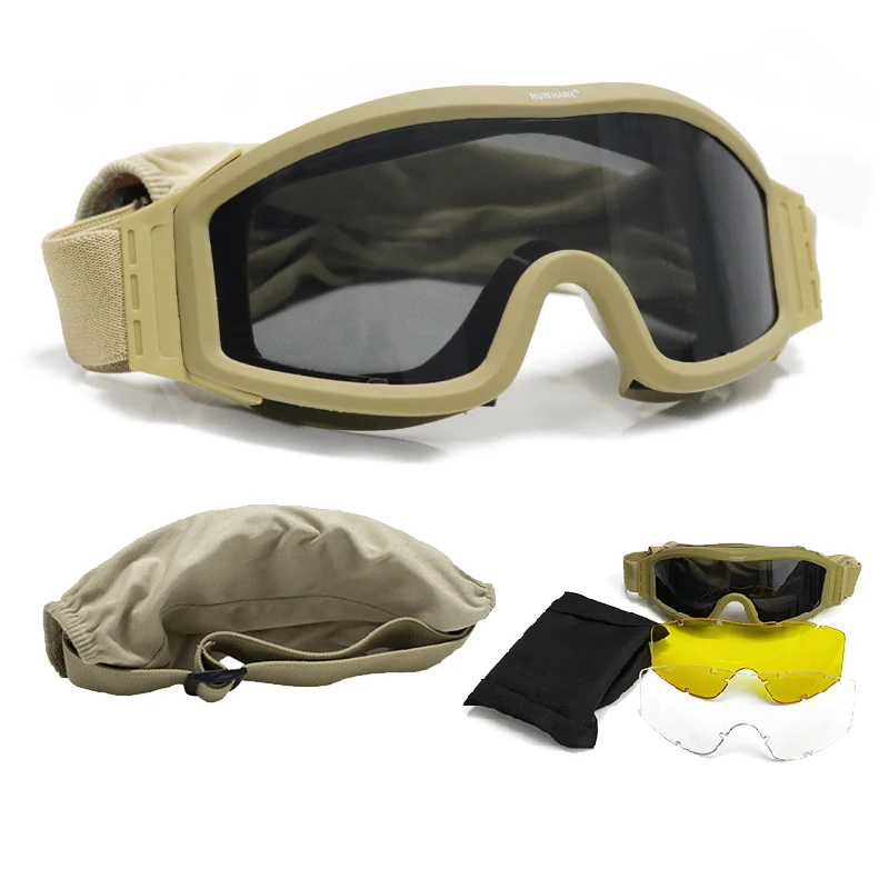 Gafas de sol para montañismo y bicicleta al aire libre para hombre, gafas tácticas de caza militar, pistola de aire militar, tiro con 3 lentes