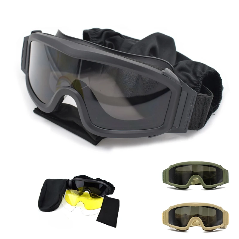 Gafas de sol para montañismo y bicicleta al aire libre para hombre, gafas tácticas de caza militar, pistola de aire militar, tiro con 3 lentes