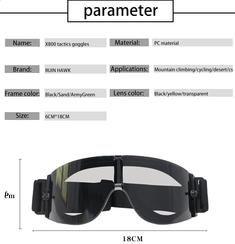 Gafas de sol con pistola de aire para exteriores, 3 lentes, gafas tácticas militares X800, pistola de aire comprimido de Color, gafas protectoras para caminar y cazar