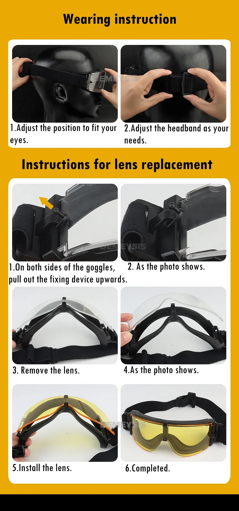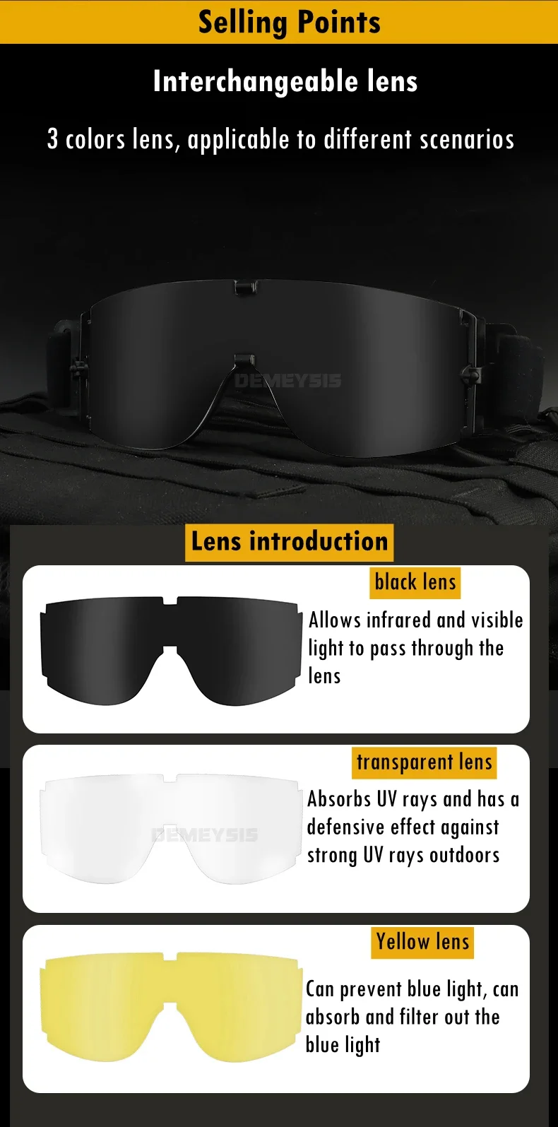 ✔ 3 lentes intercambiables– Negro (luz baja), amarillo (contraste mejorado) y transparente (estándar) para adaptabilidad durante todo el día.