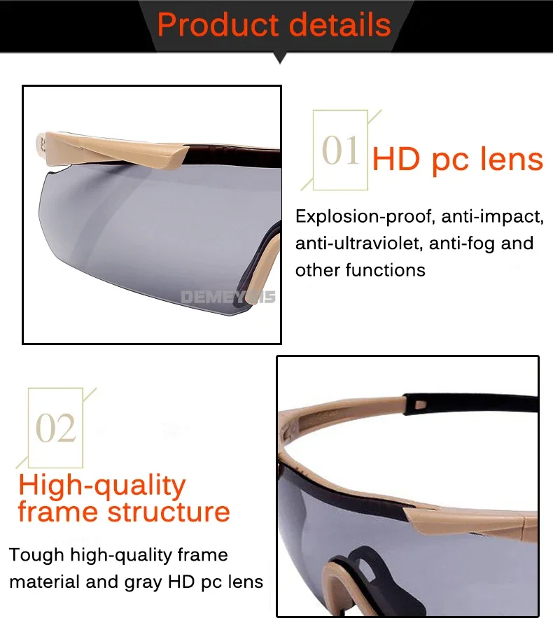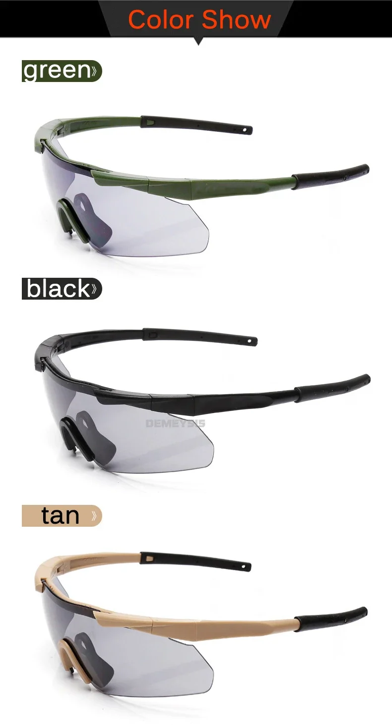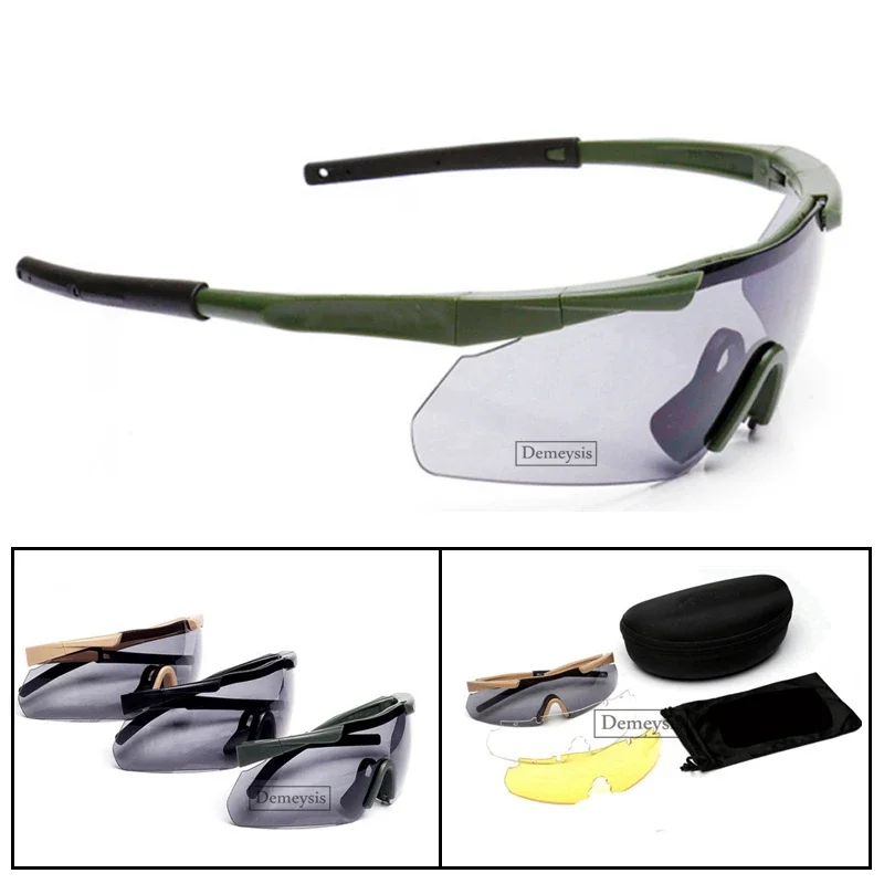 Gafas tácticas a prueba de balas para hombre, lentes de sol con 3 lentes, para senderismo y motocicleta