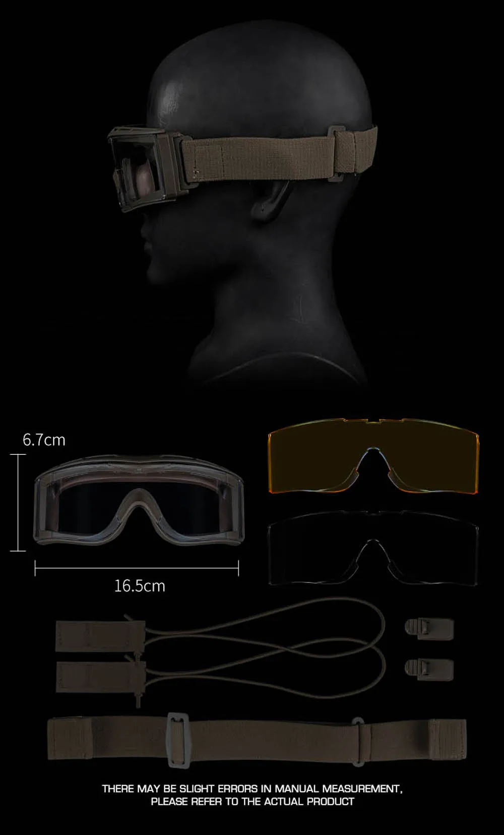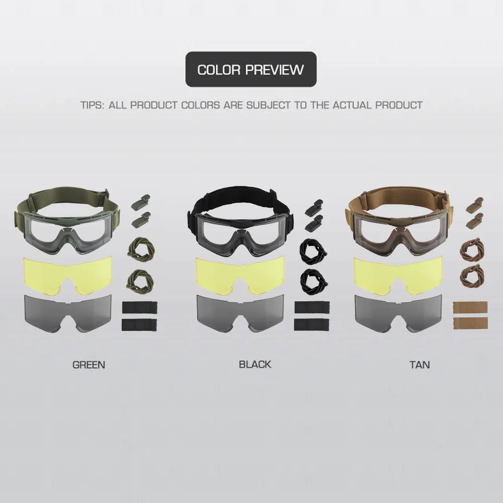 Gafas tácticas al aire libre, gafas de caza Airsoft, gafas a prueba de polvo para ciclismo de motocicleta con lentes transparentes/negras/amarillas
