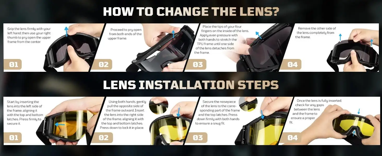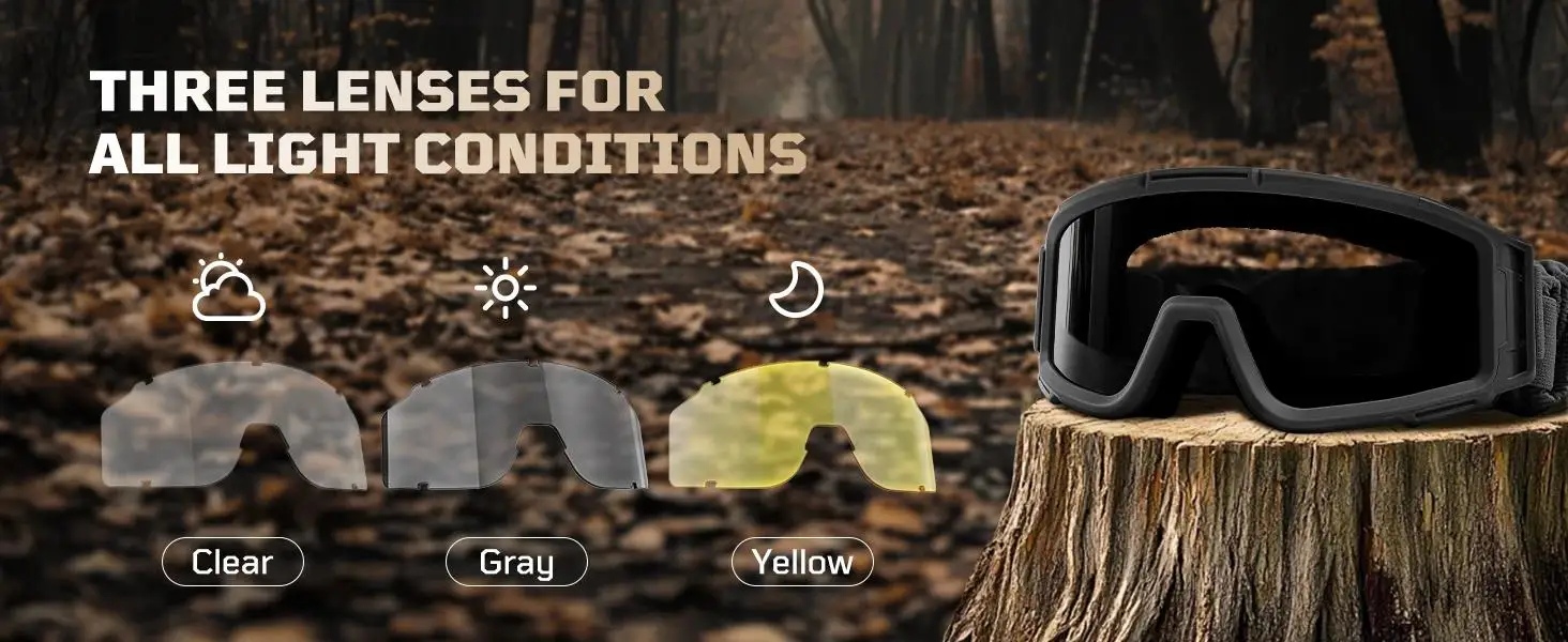 Gafas tácticas Airsoft 1TG antivaho, gafas de seguridad tácticas con 3 lentes resistentes a impactos para disparar, esquiar y montar