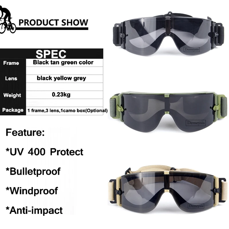 Gafas tácticas Airsoft, gafas de sol tácticas, gafas de Paintball