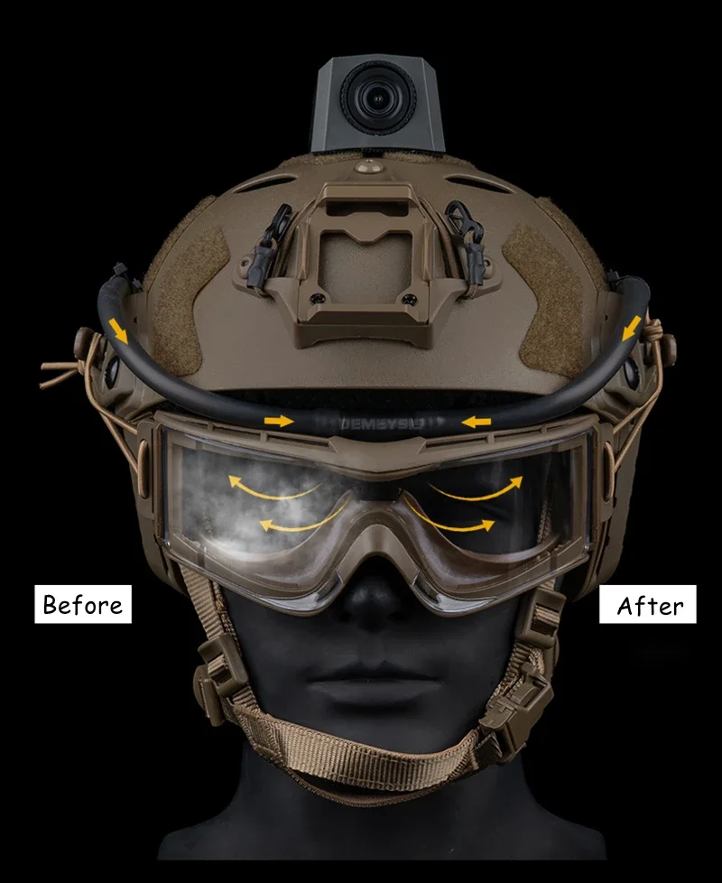 Lo utilicé durante aproximadamente 3 horas en un juego de airsoft, ¡y esto es un cambio total de juego! Realmente lo recomiendo a todos los que solían tener problemas con el empañamiento de las gafas.