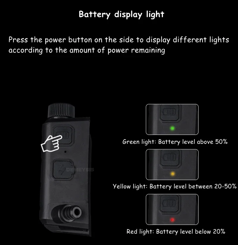 ●Luz de visualización de la batería:Presione el botón de encendido en el lateral para mostrar diferentes luces según la cantidad de energía restante..