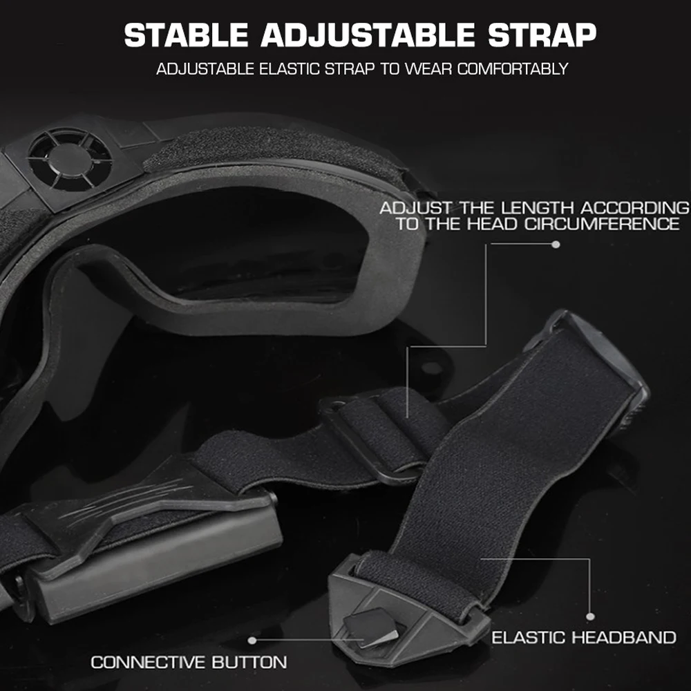 Gafas tácticas antivaho para esquí, Airsoft CS, gafas protectoras transparentes negras, 2 lentes, gafas de Motocross a prueba de polvo con microventilador