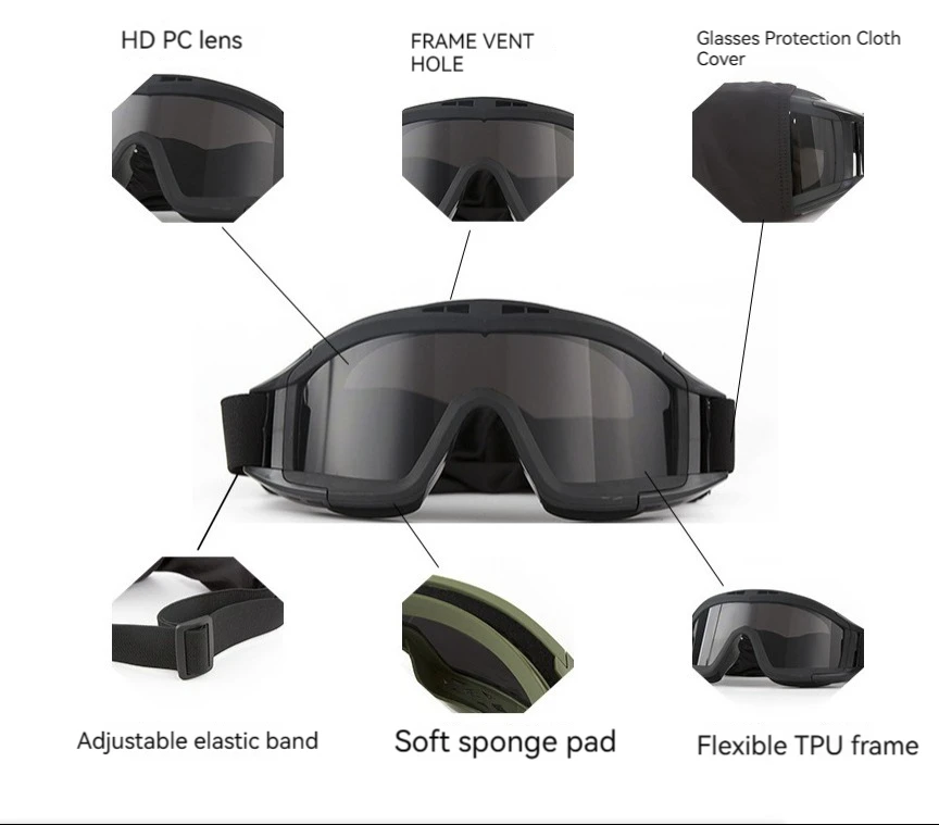 Características de la función: anti viento arena, anti UV, antideslumbrante, alta resistencia.