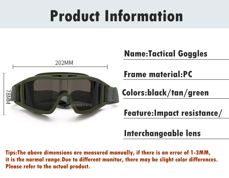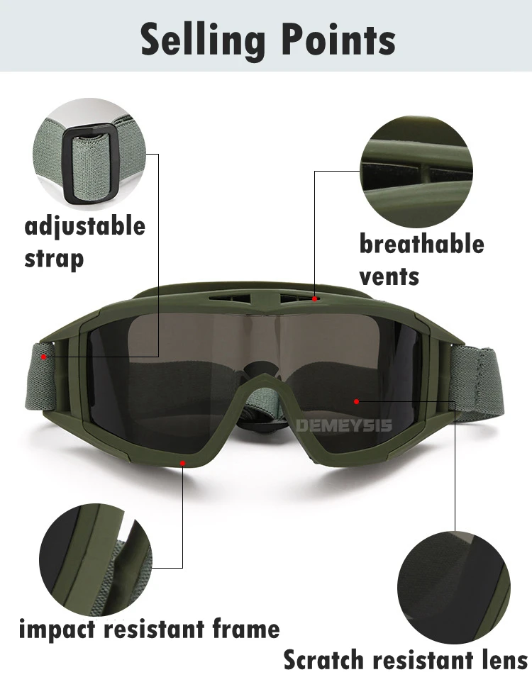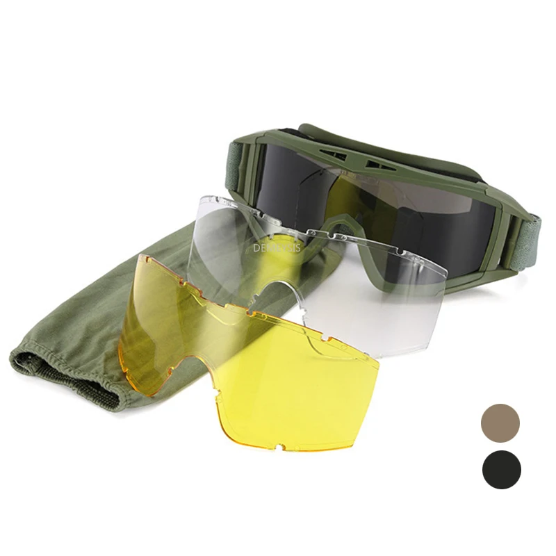 Gafas tácticas al aire libre con 3 lentes intercambiables a prueba de viento Paintball Airsoft gafas Cs protección de juego gafas de tiro
