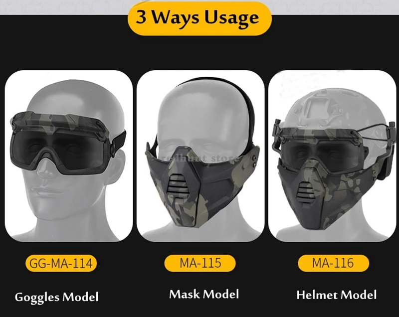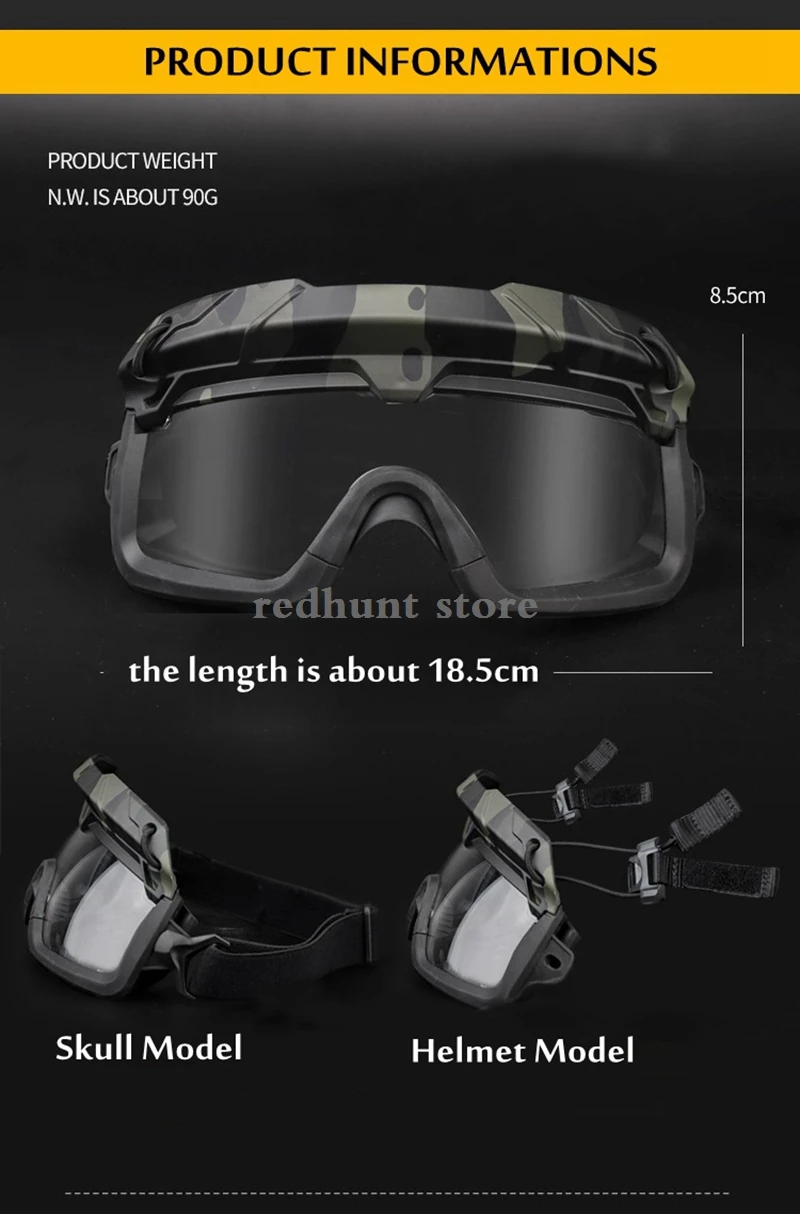 Paquete del producto: 1 x gafas tácticas (casco y máscara no incluidos).