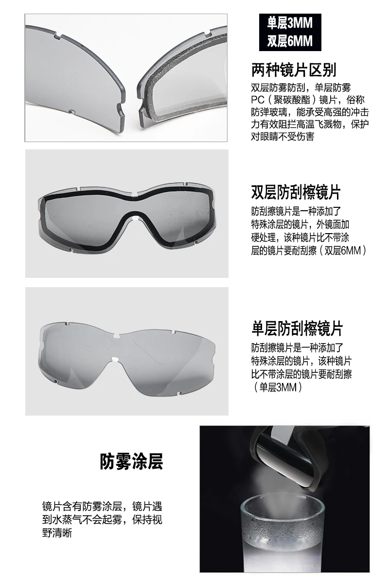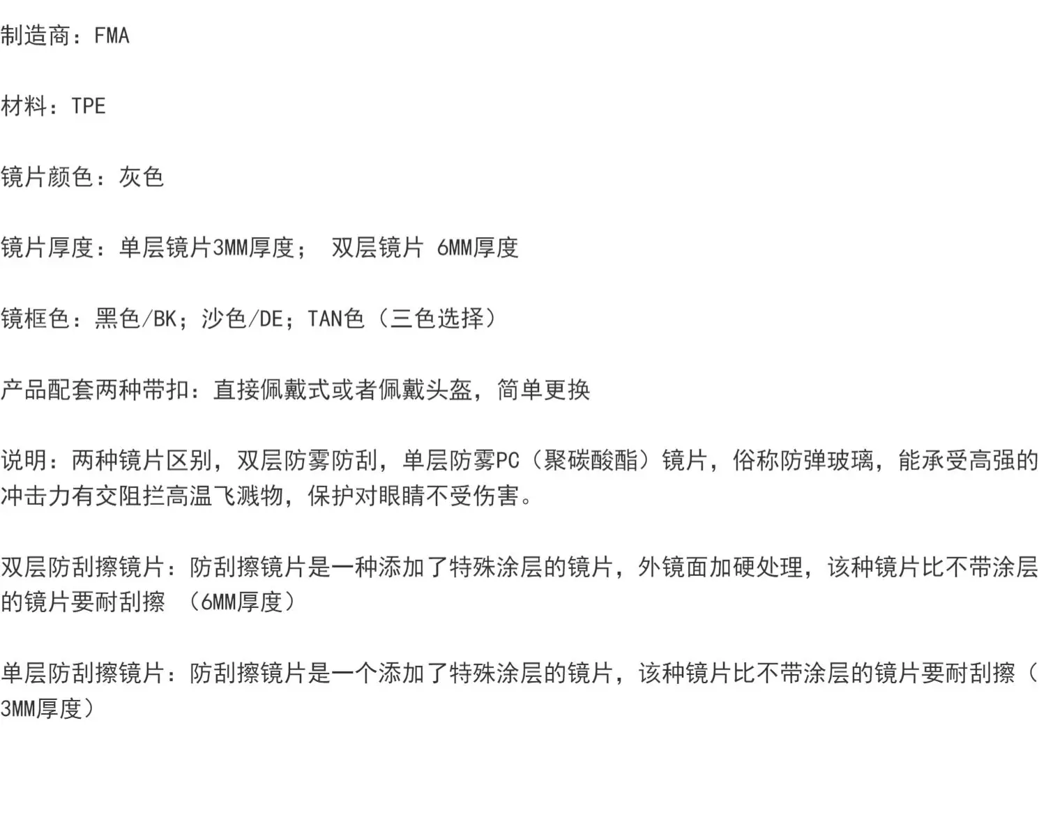 Gafas tácticas FMA JT lentes de una sola/doble capa para riel de casco/uso de cabeza