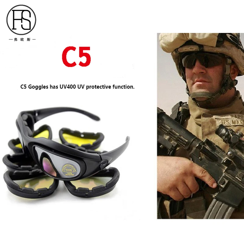 Gafas tácticas militares para exteriores, gafas militares C5 polarizadas, gafas de sol deportivas para montañismo, a prueba de viento y arena