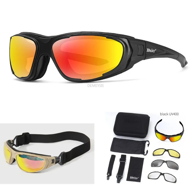 Gafas tácticas de 4 lentes polarizadas Airsoft tiro gafas protectoras UV400 caza al aire libre senderismo pesca montar gafas de sol