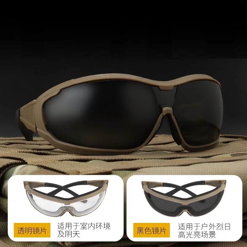 Gafas tácticas a prueba de viento para exteriores con correas fijas Diadema elástica Gafas de sol con protección UV Lente transparente/lente negra