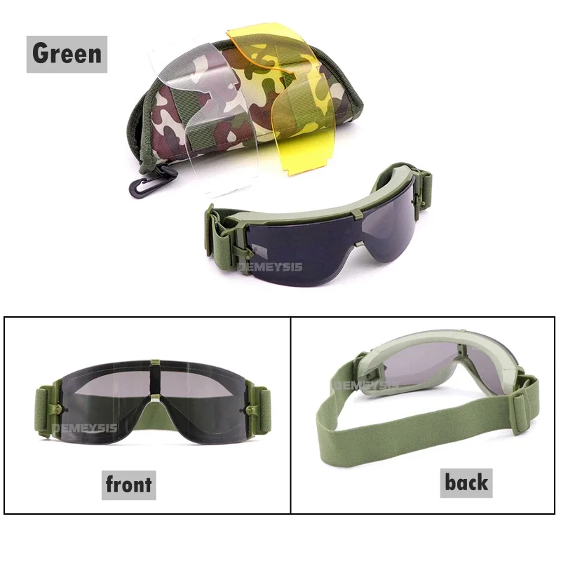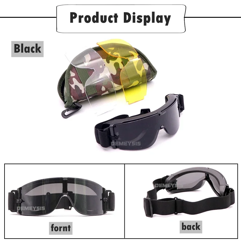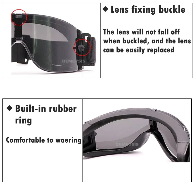● 3 lentes intercambiables: negro/amarillo/transparente, se pueden utilizar en diferentes entornos.
