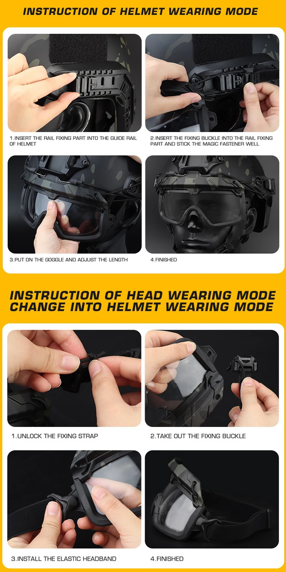 Gafas tácticas de tiro Airsoft transparentes/Negro/amarillo 3 lentes a prueba de viento a prueba de polvo para gafas de casco rápido de Motocross al aire libre