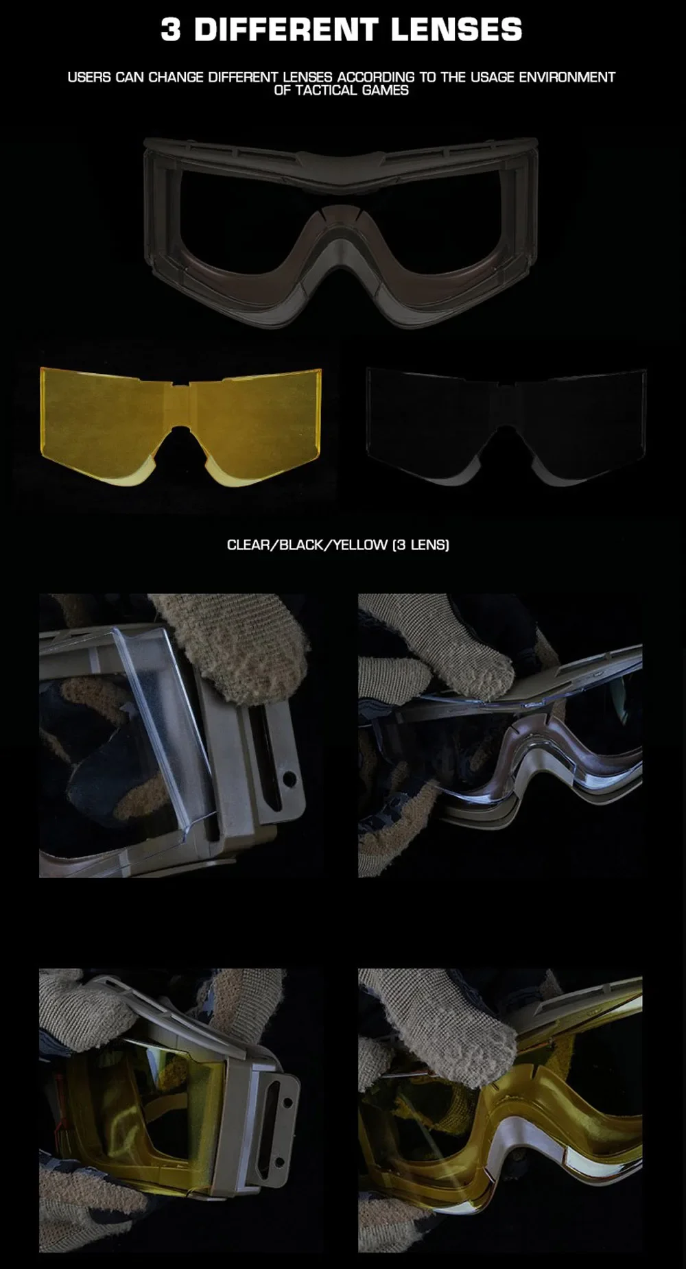 Gafas tácticas W810, gafas a prueba de viento y polvo para ciclismo, senderismo, esquí, para Airsoft, Paintball, tiro, casco rápido OPS