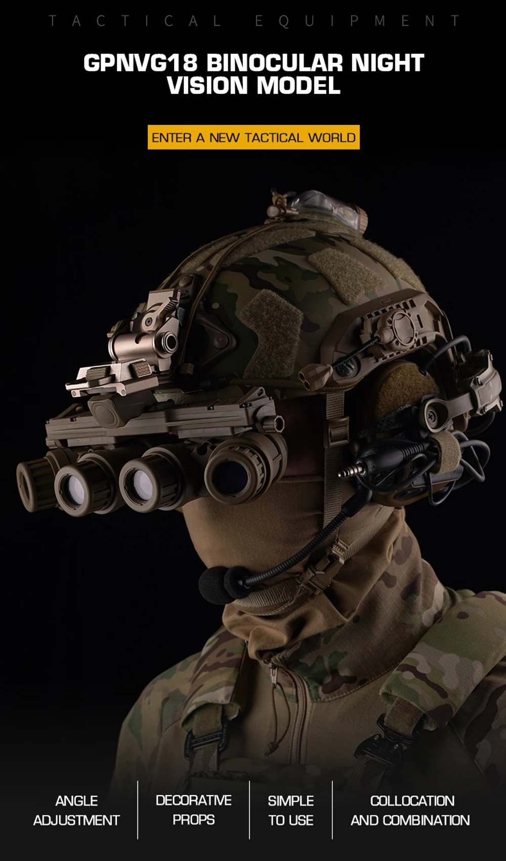 Gafas de visión nocturna modelo ficticio GPNVG-18 – Réplica de accesorios NVG de 4 tubos para accesorios de exhibición de casco táctico Airsoft, cosplay y casco táctico