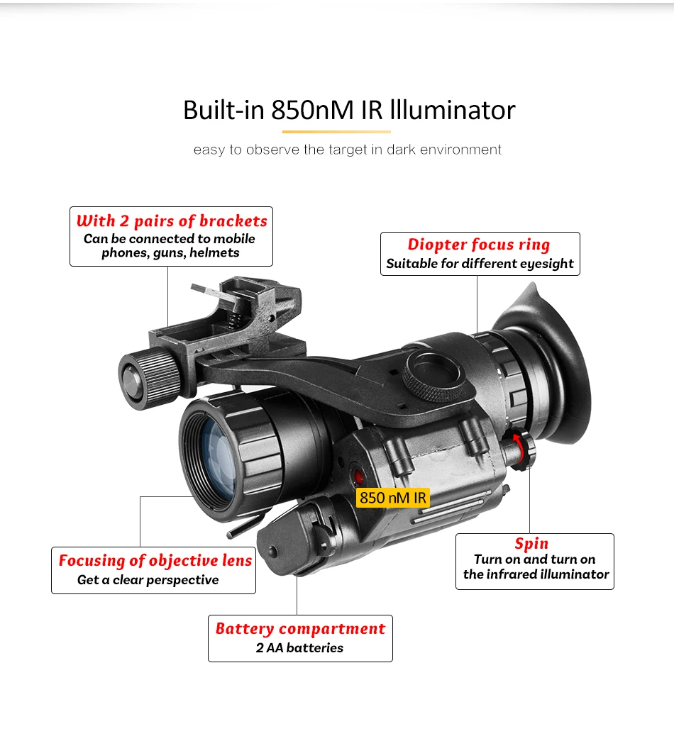 Gafas de visión nocturna PVS14, Monocular, alcance de 200M, infrarrojo IR NV, alcance de caza con soporte, mira de visión nocturna para caza