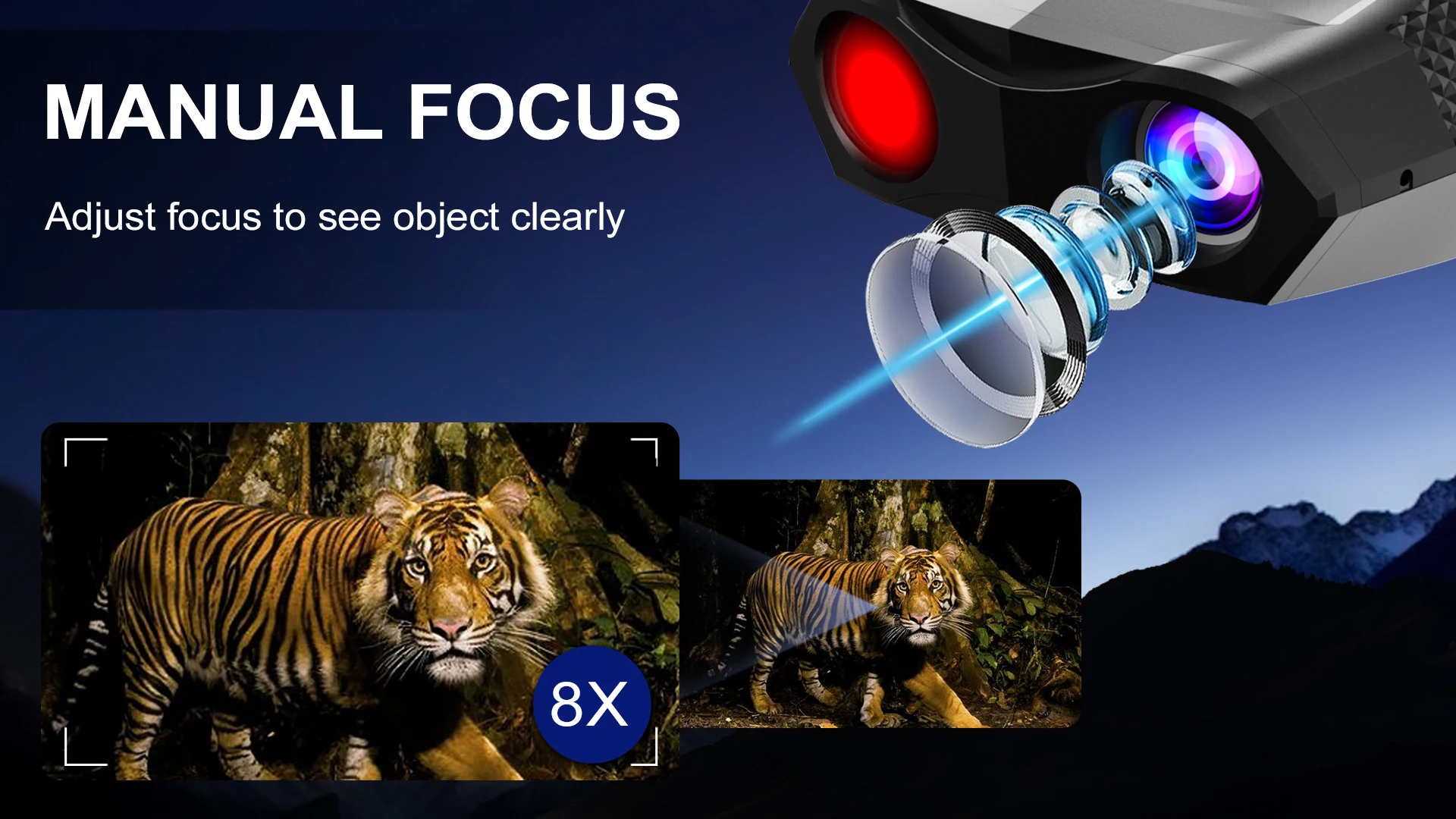 Los binoculares Z525 Pro cuentan con zoom digital de 8X, visión nocturna a todo color con modos de luz de estrellas y oscuridad completa, y una pantalla TFT de 3.360*640 para imágenes nítidas. Equipado con un LED IR de 850 nm, garantiza una visibilidad de hasta 600 metros. Al admitir una resolución de vídeo 4K de 25 FPS y una batería de litio de 5000 mAh, ofrece versatilidad y uso prolongado.