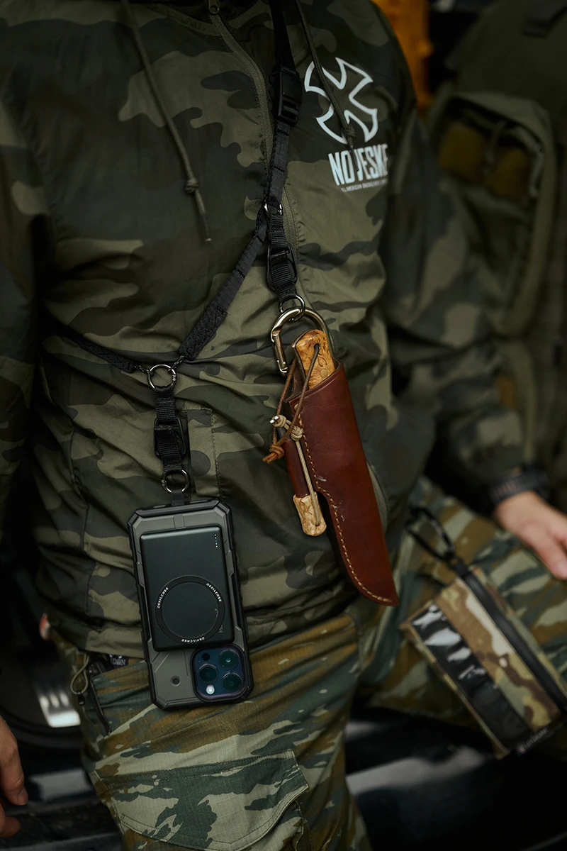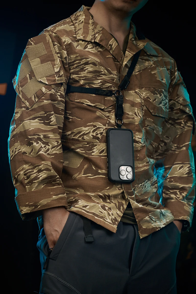 Gancho de caché magnético táctico, correa para teléfono móvil de un solo punto con correas tácticas decorativas EDC multiusos