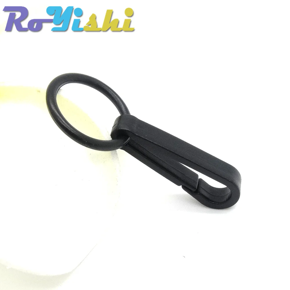 Gancho para guantes, hebillas de plástico, gancho a presión con junta tórica, color negro, 10 unids/lote por paquete