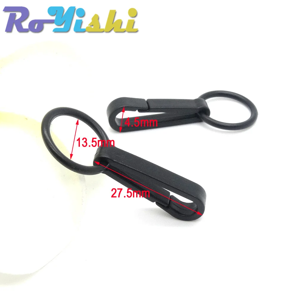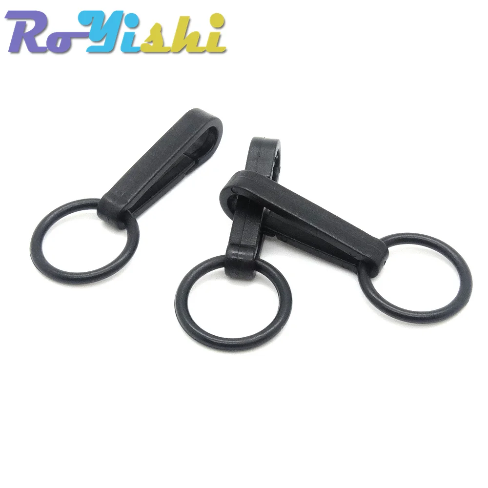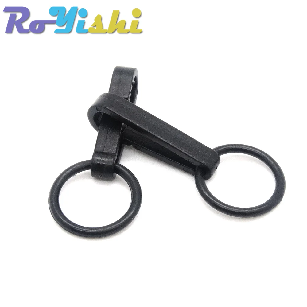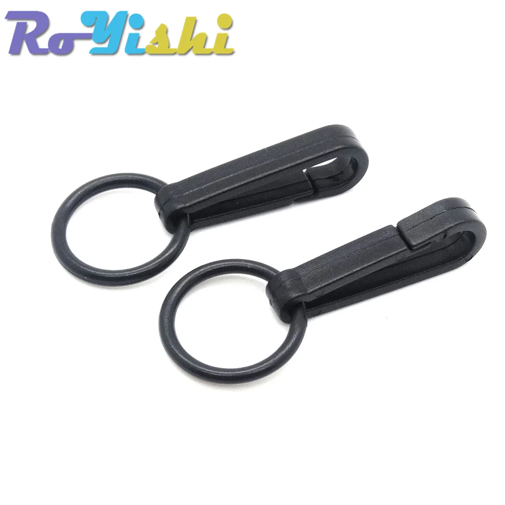 Gancho para guantes, hebillas de plástico, gancho a presión con junta tórica, color negro, 100 unids/lote por paquete