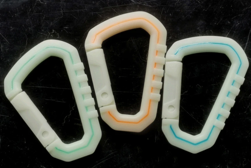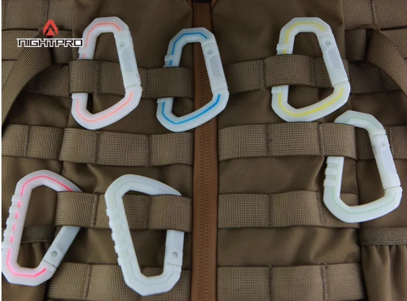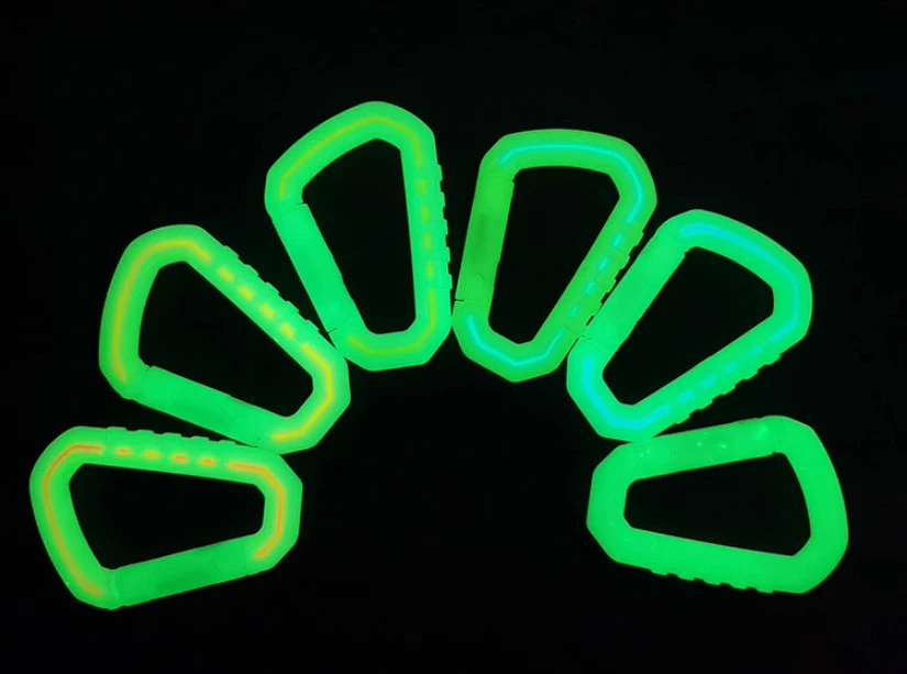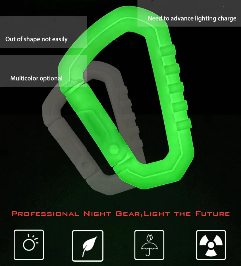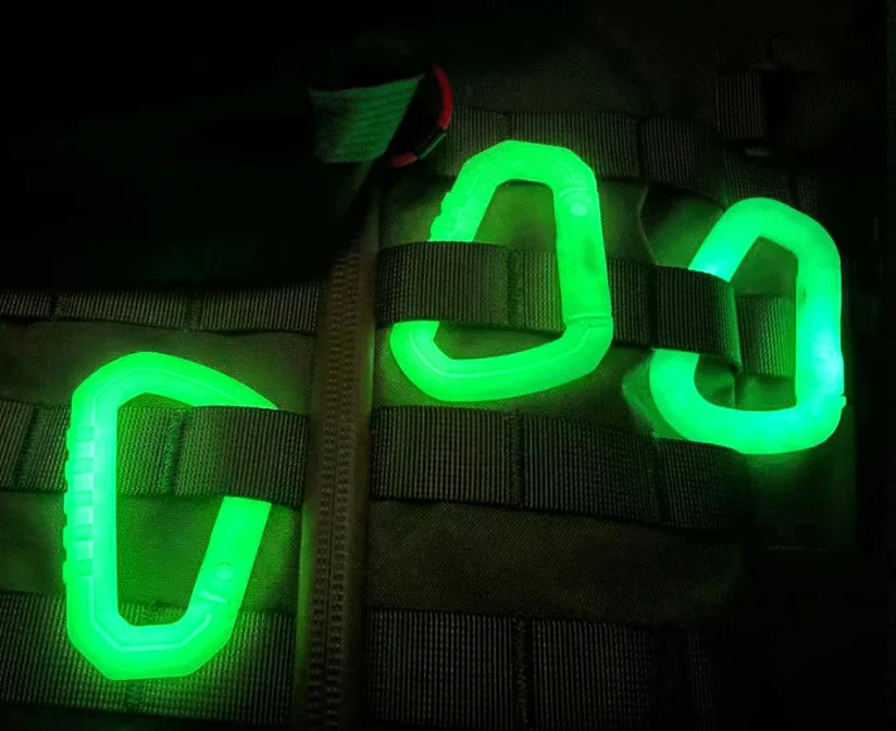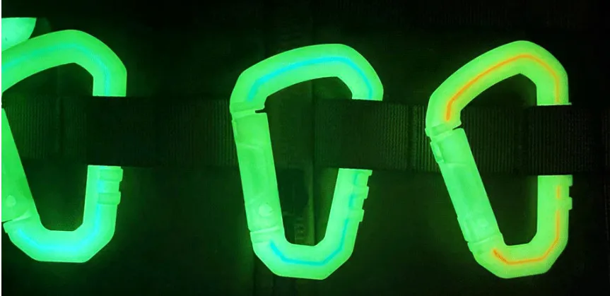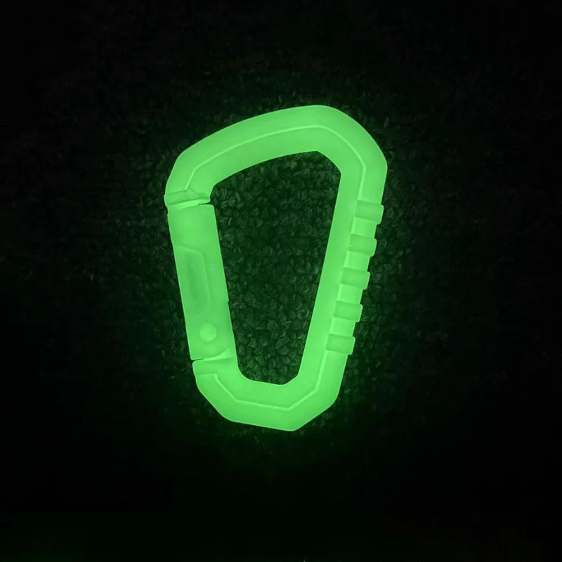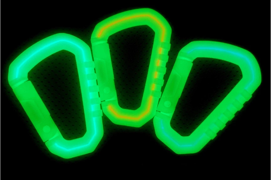 Gancho ligero luminoso que brilla en la oscuridad al aire libre, escalada, Camping, mochila, hebilla colgante táctica, anillo D EDC, herramientas de equipo
