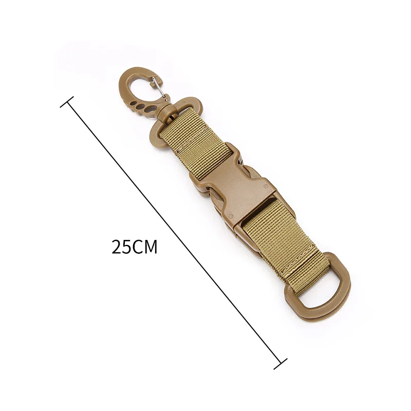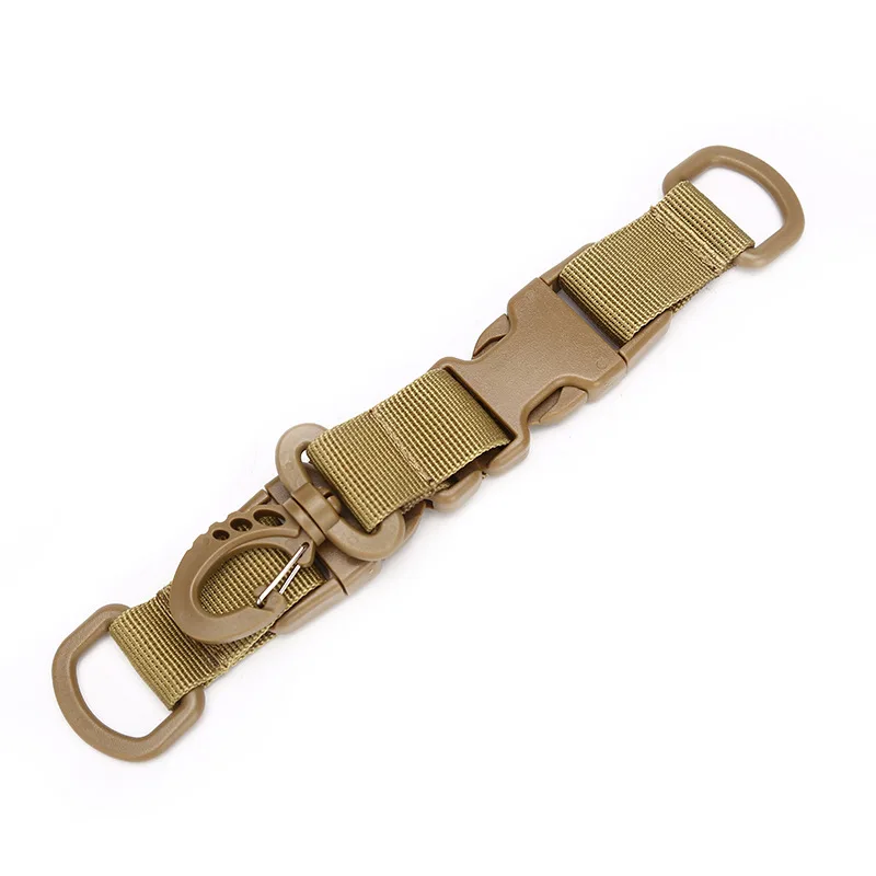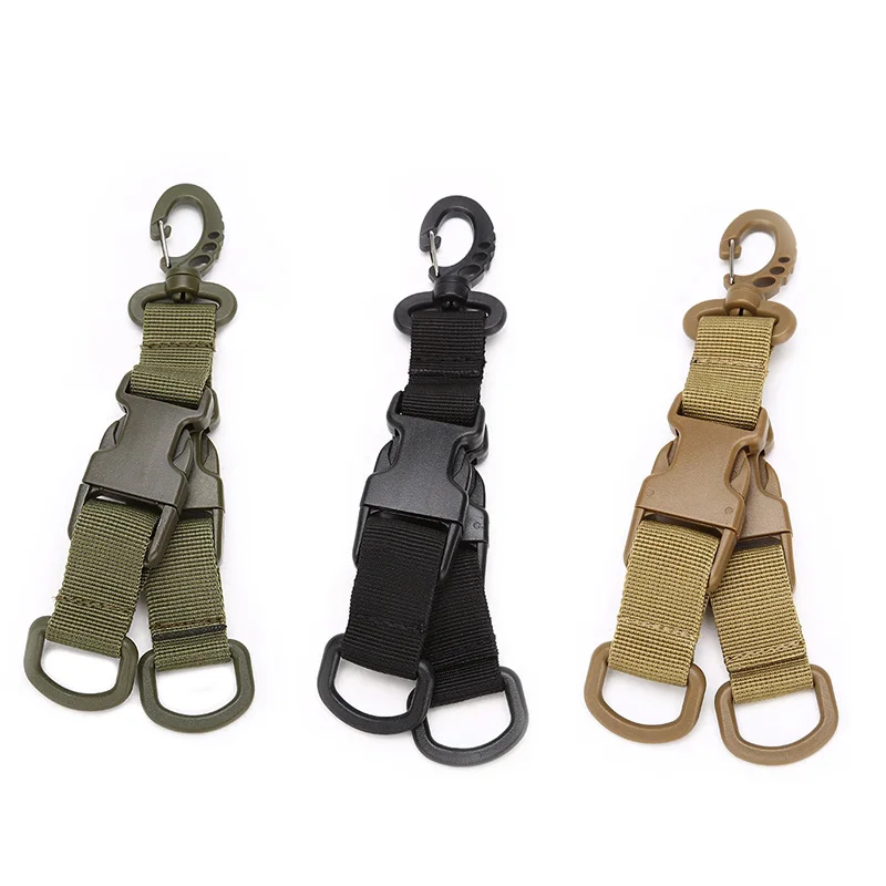 Nombre: táctica al aire libre cinta de nylon mochila y hebilla multi función montañismo tipo D Botón de Llave doble desmontaje cierre Embalaje: bolsa de plástico independiente Material: cinta de nailon + hebilla de mariposa + hebilla colgante universal + anillo de acero plástico D Color: Negro Especificación: largo completo 25cm, ancho de la correa 2,5 cm Aplicación: Hebilla desmontable rápida para sistema MOLLE Peso neto: 35g El paquete incluye: 1 hebilla